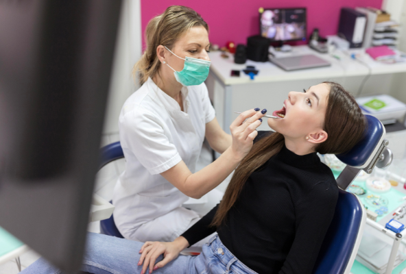 - Visual Inspection: We use a bright light and a mirror to look at your lips, gums, the roof of your mouth, and the back of your throat. We are looking for red or white patches or sores that don’t look like they are healing right.